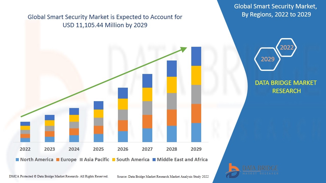 Data Bridge Market Research analyses that the smart security market will exhibit a CAGR of 9.80% for the forecast period of 2022-2029 and is expected to reach the market value of USD 11,105.44 million by 2029.