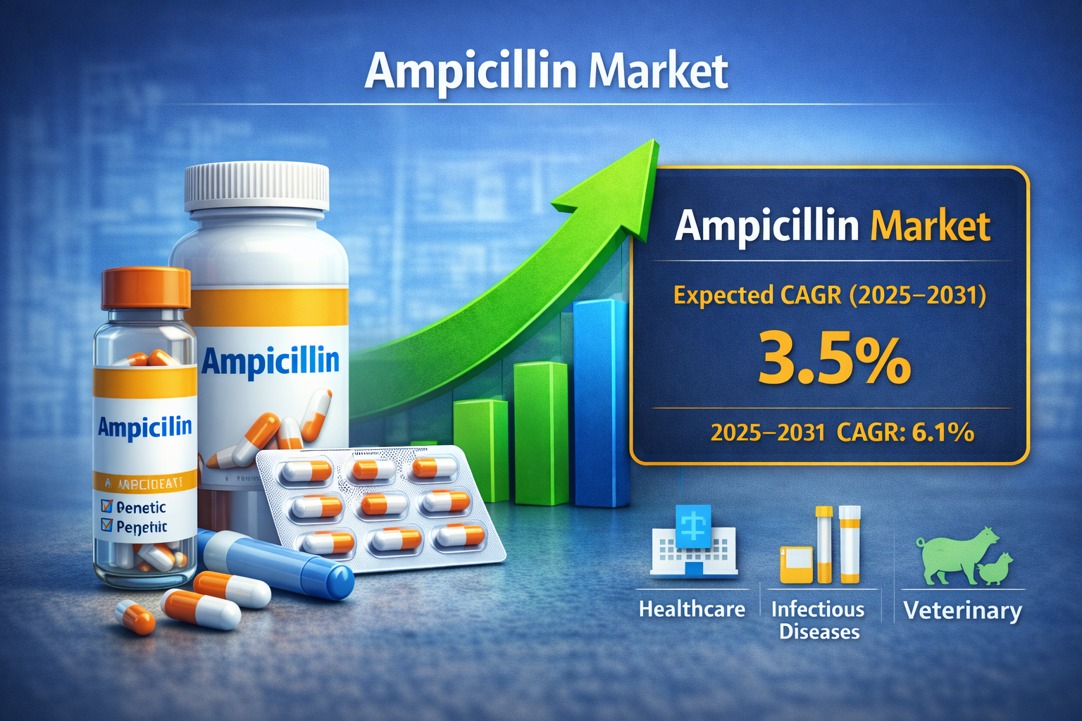 The global Ampicillin Market is anticipated to grow steadily over the forecast period from 2025 to 2031, driven by the persistent need for effective antibiotic therapies in combating bacterial infections and expanding healthcare infrastructure worldwide. According to The Insight Partners, the market is expected to register a compound annual growth rate (CAGR) of approximately 3.5% during this period, reflecting sound demand across various clinical applications and regions.