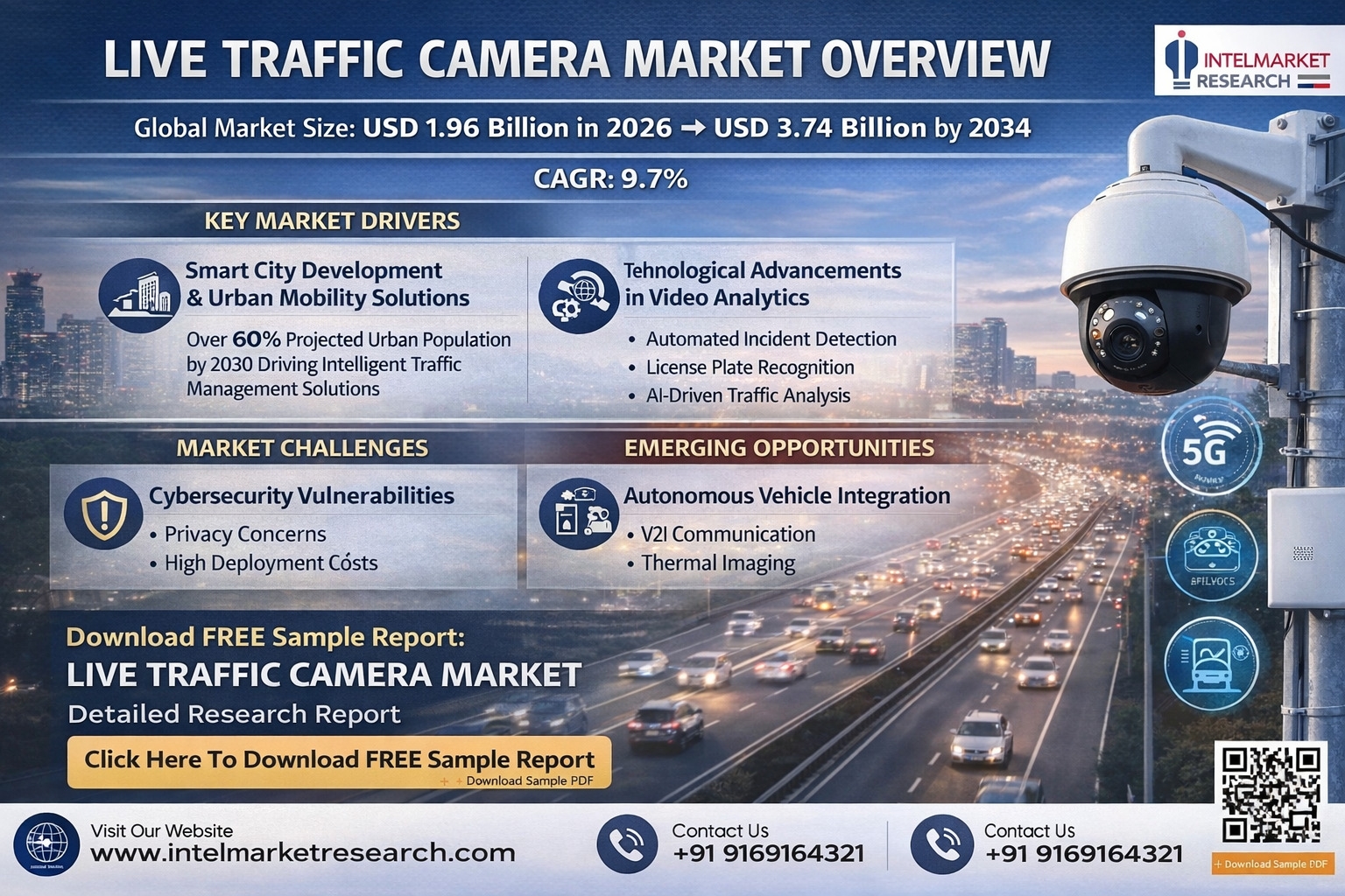 According to a new report from Intel Market Research, Global Live Traffic Camera market was valued at USD 1.96 billion in 2025 and is projected to reach USD 3.74 billion by 2034, growing at a CAGR of 9.7% during the forecast period (2026–2034). This expansion reflects the increasing adoption of intelligent transportation systems and smart city initiatives worldwide.