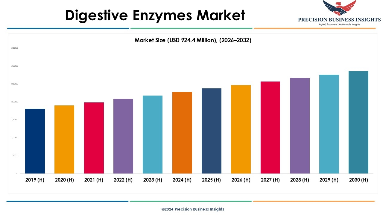 Precision Business Insights has published a report on the global digestive enzymes market, estimating its value at USD 924.4 Million in 2025 and is expected to expand at a compound annual growth rate (CAGR) of 8.2% over the forecast period 2026-2032. The report explores the market growth and potential opportunities in the market industry. Additionally, it offers a detailed analysis of how these elements will affect market demand dynamics and market performance throughout the forecast period.