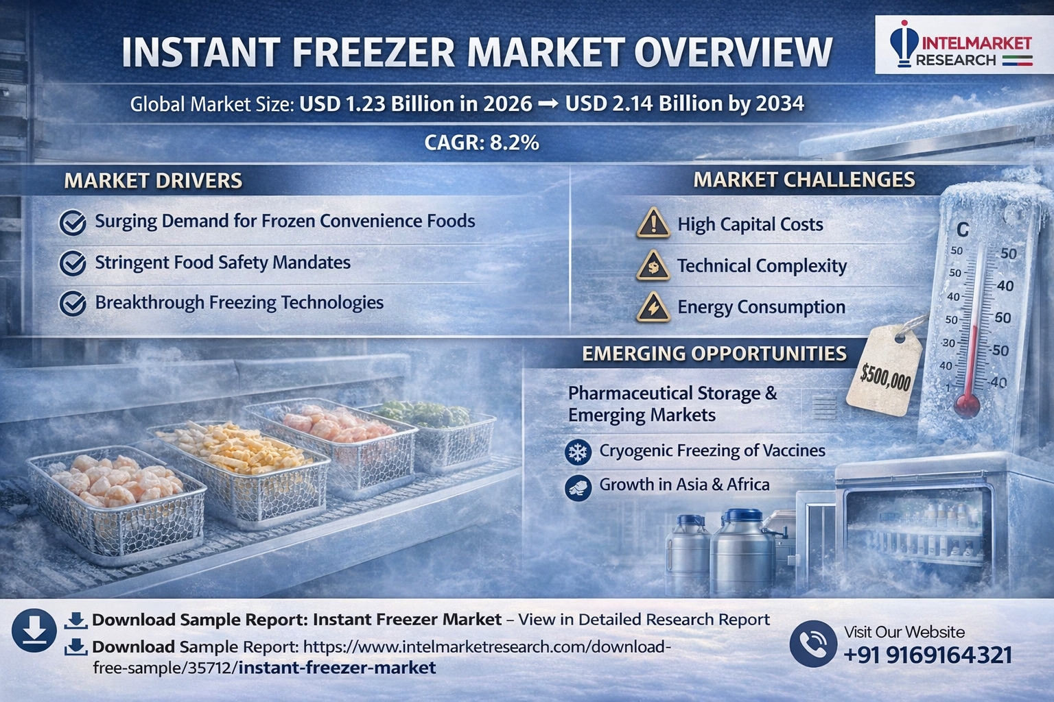 According to a new report from Intel Market Research, Global Instant Freezer market was valued at USD 1.23 billion in 2025 and is projected to reach USD 2.14 billion by 2034, growing at a CAGR of 8.2% during the forecast period (2026-2034). This growth is driven by increasing demand for frozen convenience foods, stricter food safety regulations, and technological advancements in rapid freezing technologies.