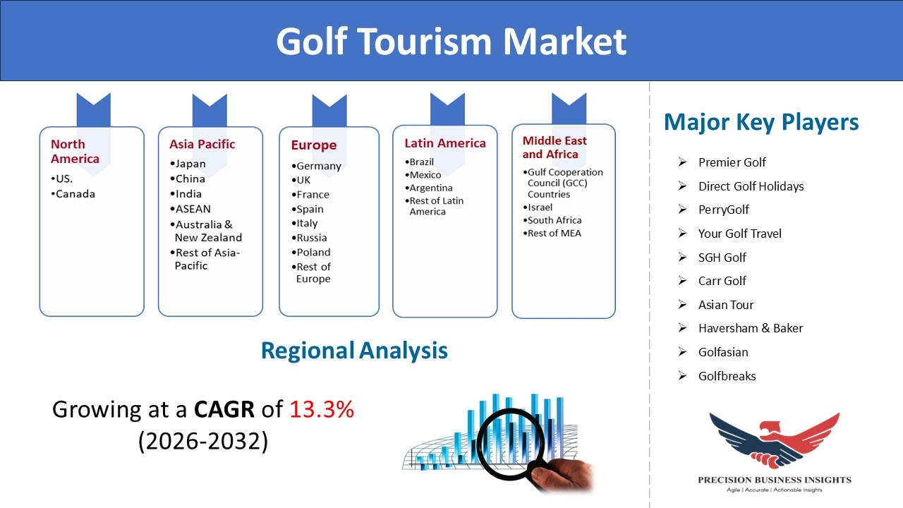 Precision Business Insights has published a report on the global golf tourism market, estimating its value at USD 41.2 billion in 2025 and is expected to expand at a compound annual growth rate (CAGR) of 13.3% over the forecast period 2026-2032. The report explores the market growth and potential opportunities in the market industry. Additionally, it offers a detailed analysis of how these elements will affect market demand dynamics and market performance throughout the forecast period.