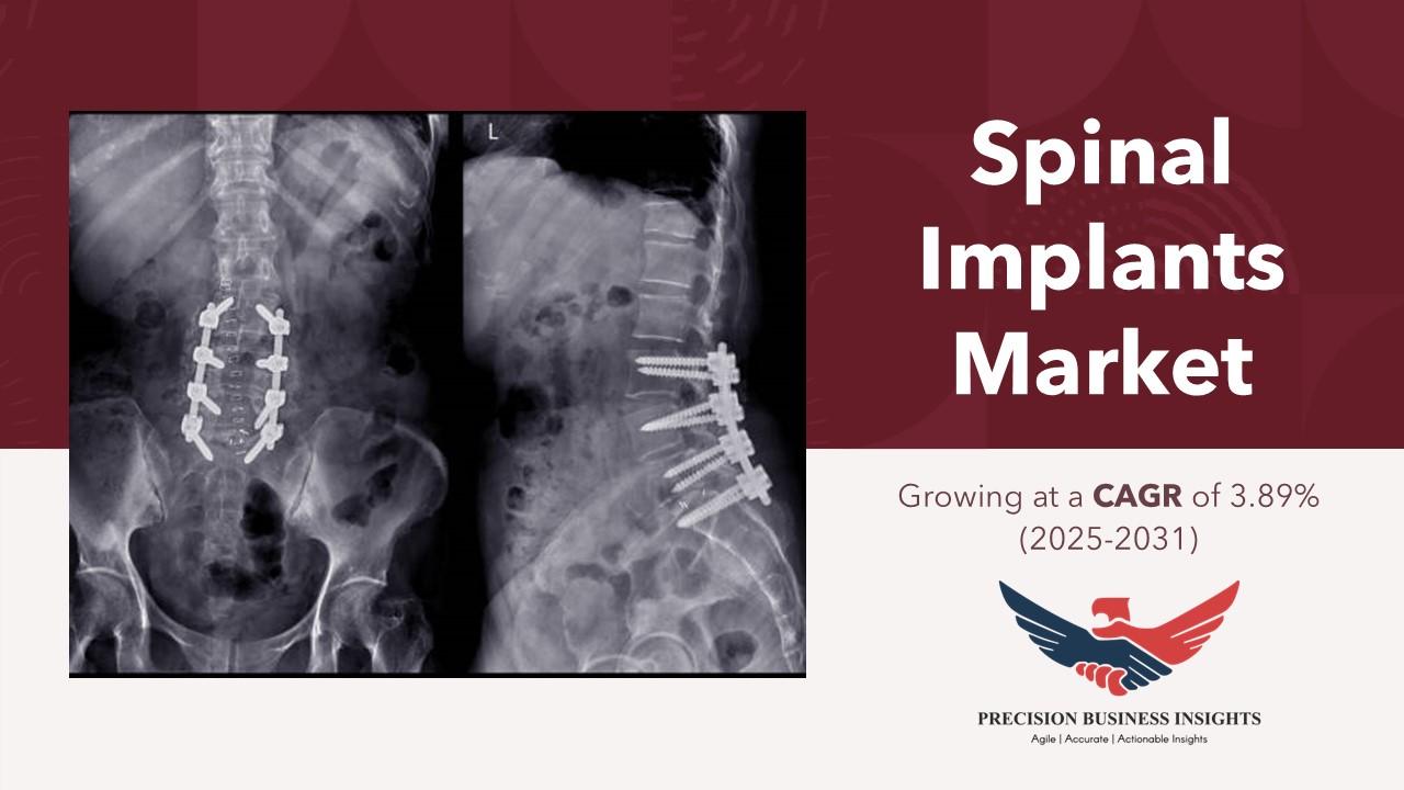 Precision Business Insights has published a report on the global Spinal Implants Market, estimating its value at USD 12,451.0 Million in 2024 and is expected to expand at a compound annual growth rate (CAGR) of 3.89% over the forecast period 2025-2031. The report explores the market growth and potential opportunities in the market industry. Additionally, it offers a detailed analysis of how these elements will affect market demand dynamics and market performance throughout the forecast period.