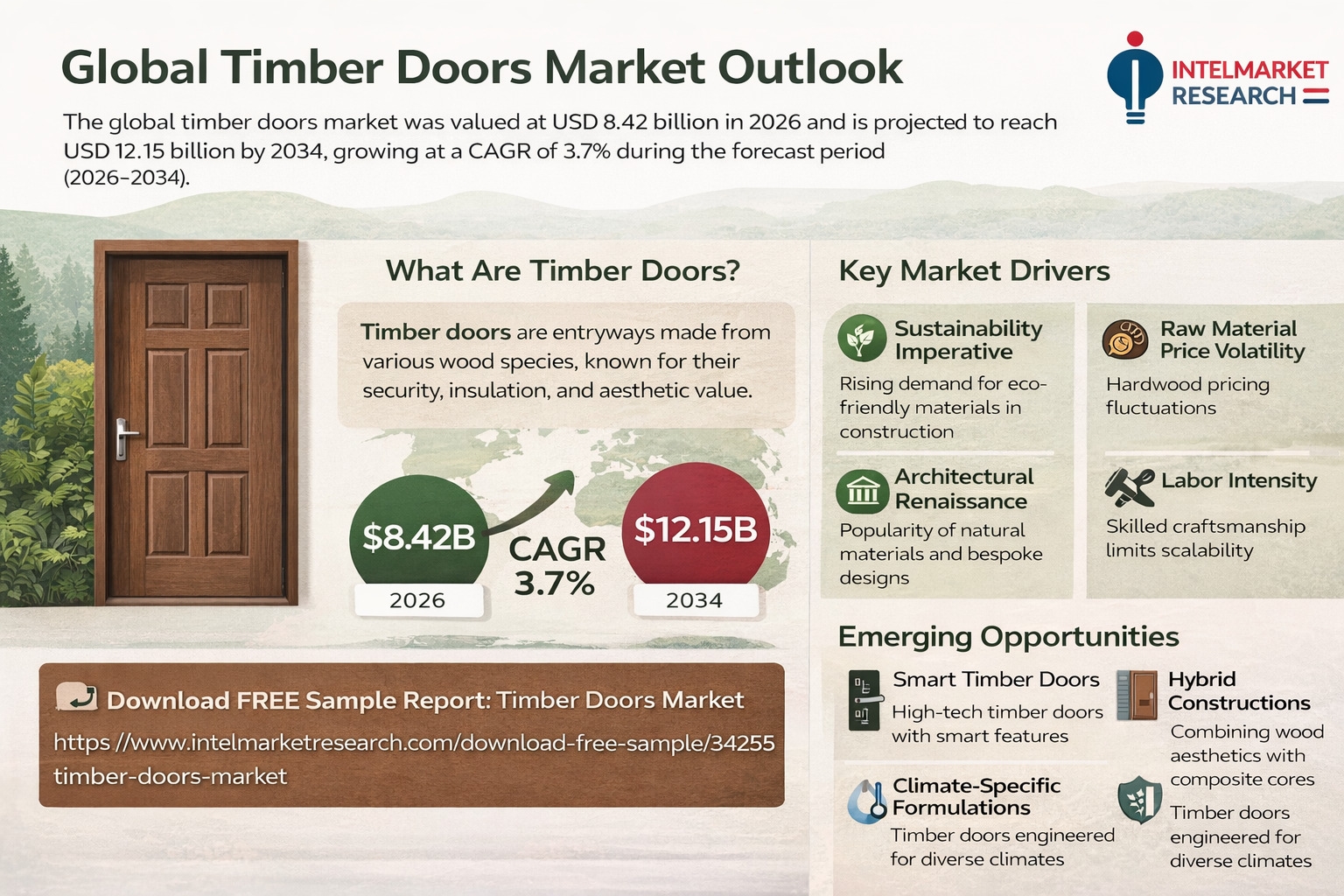 According to a new report from Intel Market Research, Global timber doors market was valued at USD 8.42 billion in 2025 and is projected to reach USD 12.15 billion by 2034, growing at a steady CAGR of 3.7% during the forecast period (2026-2034). This growth reflects the enduring appeal of wood as a building material despite evolving alternatives, driven by sustainability trends and architectural preferences that favor natural materials.