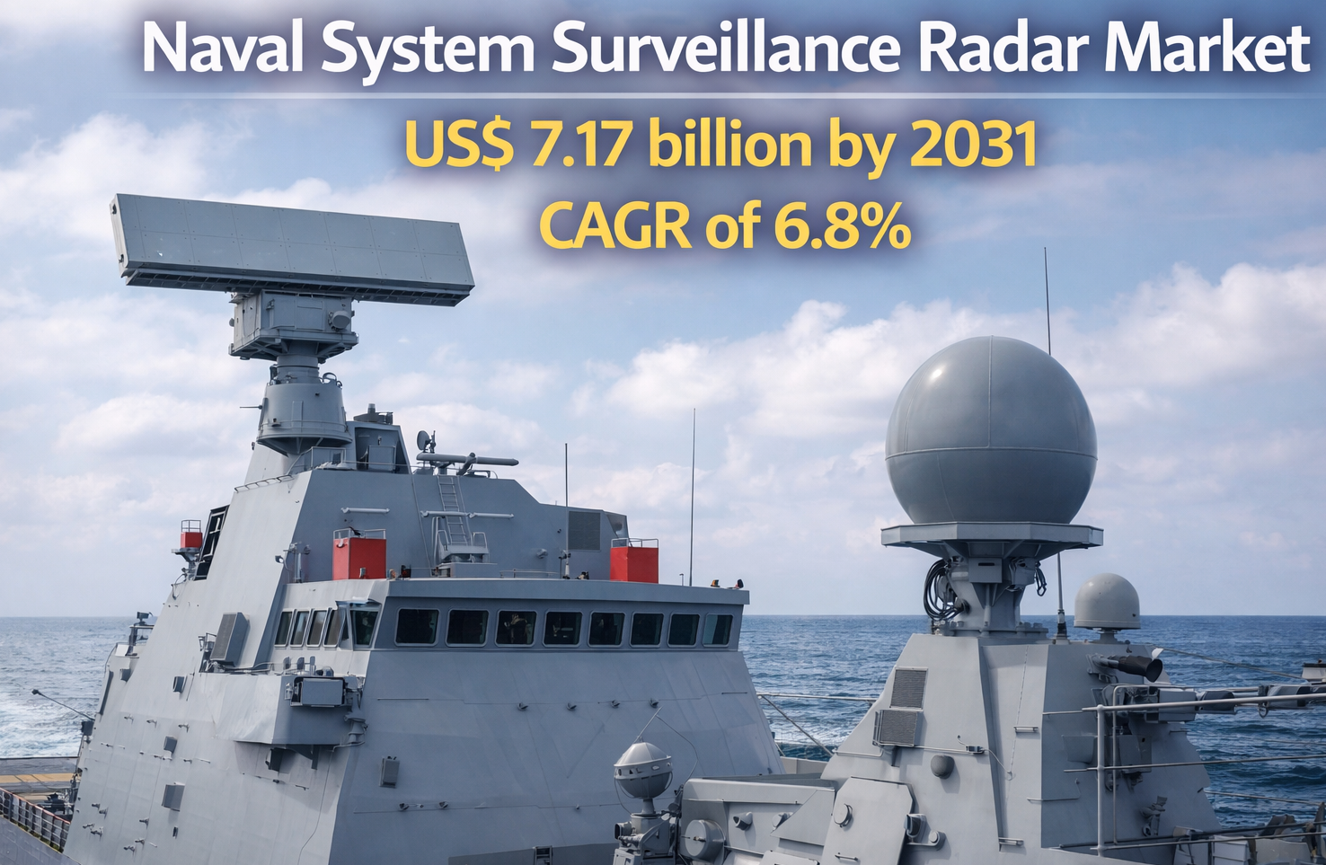 The financial landscape of this sector reflects a robust commitment to naval modernization. The Naval System Surveillance Radar Market is projected to reach US$ 7.17 billion by 2031 from US$ 4.25 billion in 2023. The market is expected to register a CAGR of 6.8% during 2023–2031. This steady growth is fueled by a global transition from legacy 2D radar systems to high-performance, solid-state Active Electronically Scanned Array (AESA) technologies.