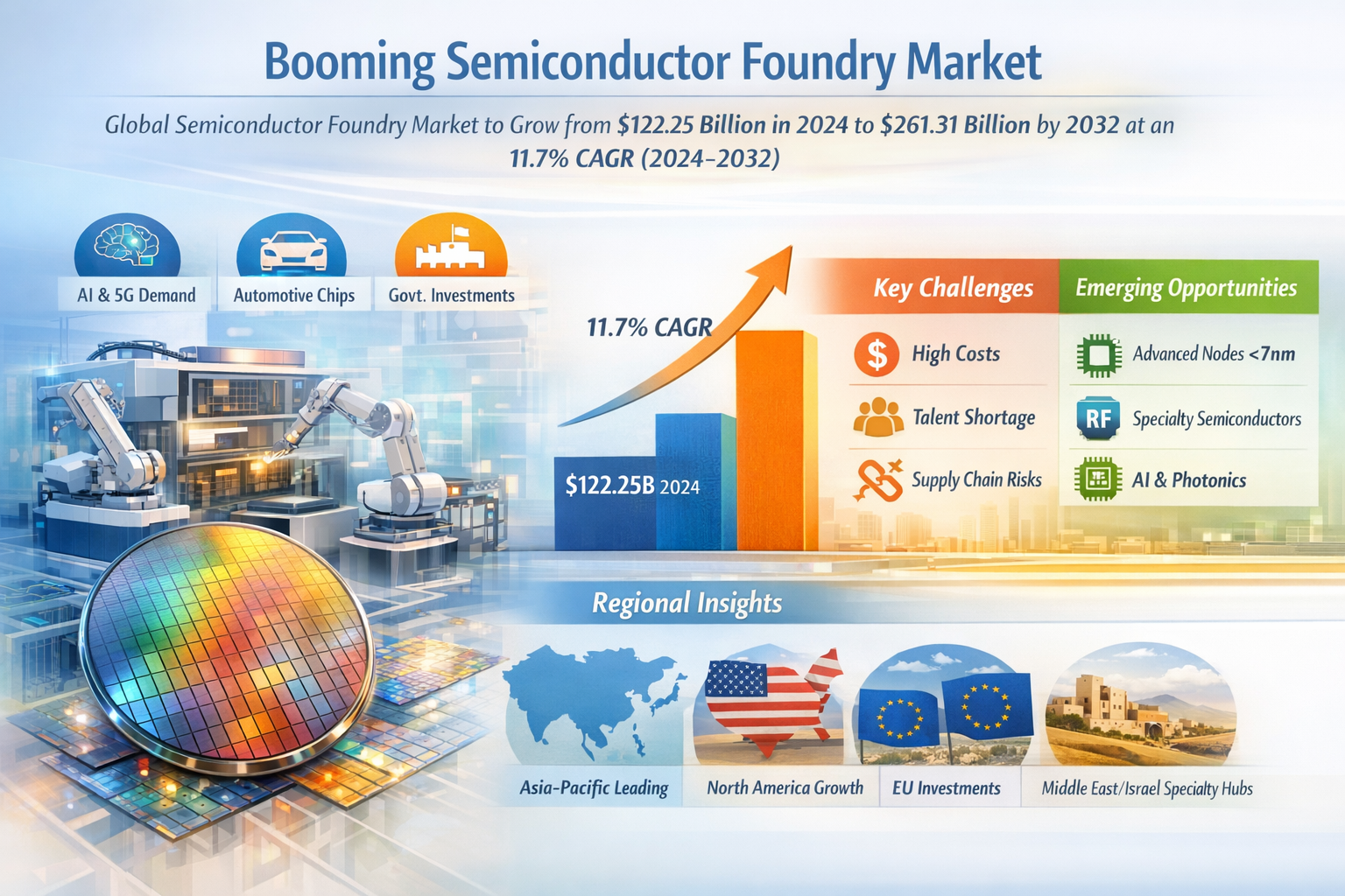 - Specialty Technologies – Growing demand for RF, analog, and power semiconductors creates opportunities for foundries focusing on these niche segments