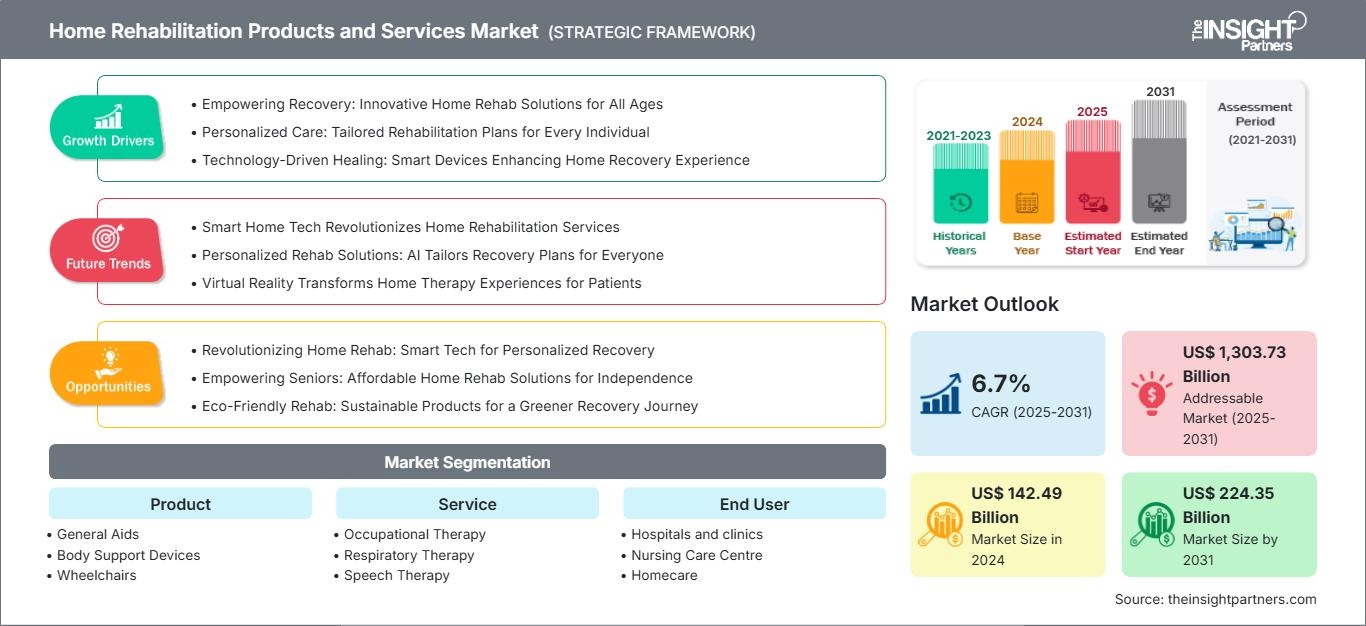 The Home Rehabilitation Products And Services Market size is expected to reach US$ 224.35 Billion by 2031. The market is anticipated to register a CAGR of 6.7% during 2025 through 2031.