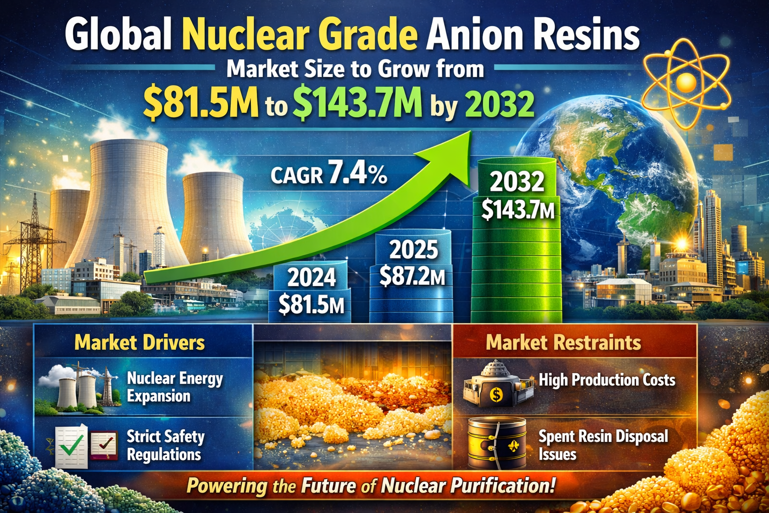 Global Nuclear Grade Anion Resins Market Size to Grow from USD 81.5M to USD 143.7M by 2032