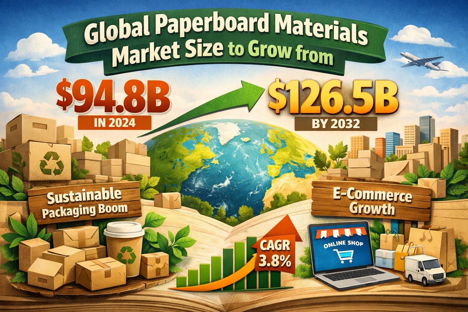Global Paperboard Materials Market Size to Grow from USD 94.8B to USD 126.5B by 2032