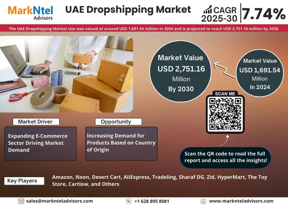 MarkNtel Advisors, a leading market research and consulting firm, has announced the release of its latest study titled UAE Dropshipping Market Research Report Forecast (2025-2030). This report provides a detailed assessment of the UAE Dropshipping Market, covering its evolving dynamics, emerging trends, key growth drivers, major challenges, and competitive landscape.