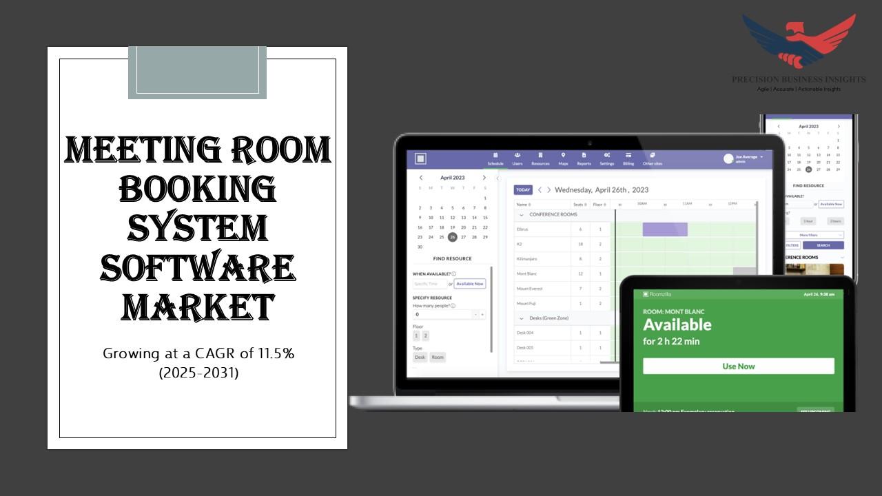 Precision Business Insights has published a report on the global meeting room booking system software market, estimating its value at USD 78.57 billion in 2024 and is expected to expand at a compound annual growth rate (CAGR) of 11.5% over the forecast period 2025-2031. The report explores the market growth and potential opportunities in the market industry. Additionally, it offers a detailed analysis of how these elements will affect market demand dynamics and market performance throughout the forecast period.