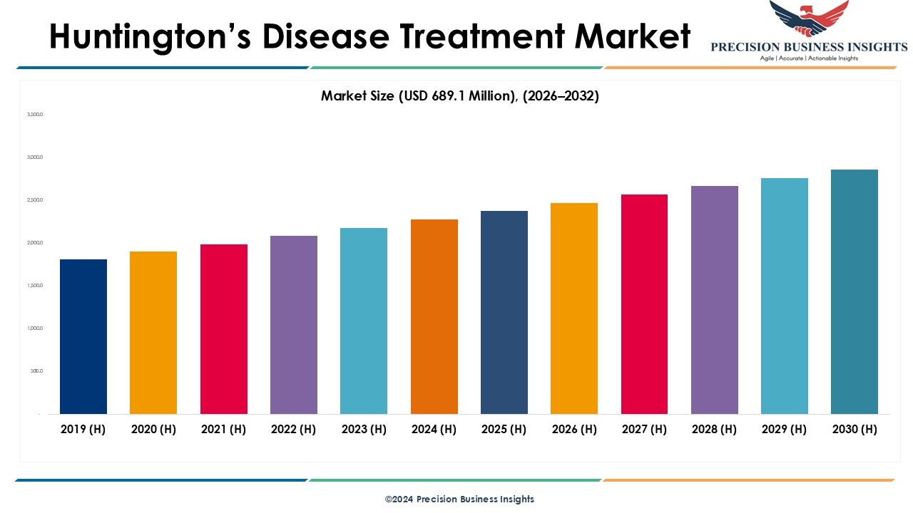Precision Business Insights has published a report on the global huntington’s disease treatment market, estimating its value at USD 689.1 Million in 2025 and is expected to expand at a compound annual growth rate (CAGR) of 18.9% over the forecast period 2026-2032. The report explores the market growth and potential opportunities in the market industry. Additionally, it offers a detailed analysis of how these elements will affect market demand dynamics and market performance throughout the forecast period.