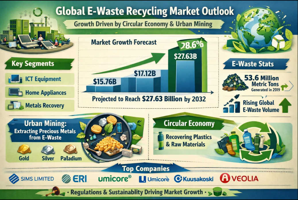 Global E-Waste Recycling Market to Hit $27.63B by 2032 | Circular Economy & Urban Mining Driving Growth