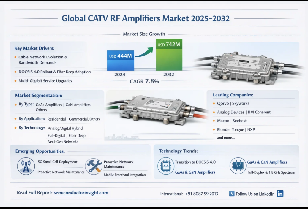 #CATV #RFAmplifiers #Semiconductor #MarketGrowth #DOCSIS40 #5G #Broadband #CableNetwork #TechTrends #GaN #GaAs #DigitalTransformation #Telecom #NetworkInfrastructure #MarketResearch