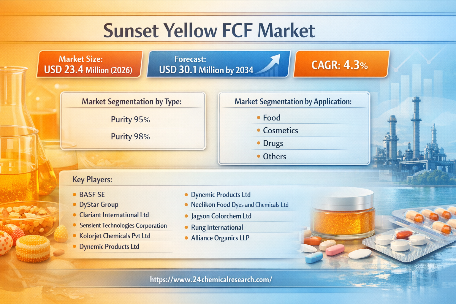Sunset Yellow FCF market Analysis 2025–2032: Demand Shifts & Growth Trends Southeast Asia Sunset Yellow FCF market was valued at USD 23.4 million in 2026 and is projected to reach USD 30.1 million by 2034, growing at a CAGR of 4.3% during the forecast period. Download FREE Sample Report: https://www.24chemicalresearch.com/download-sample/278253/asia-southeast-sunset-yellow-fcf-market-market-674·1 Прегледи ·0 Осврти -