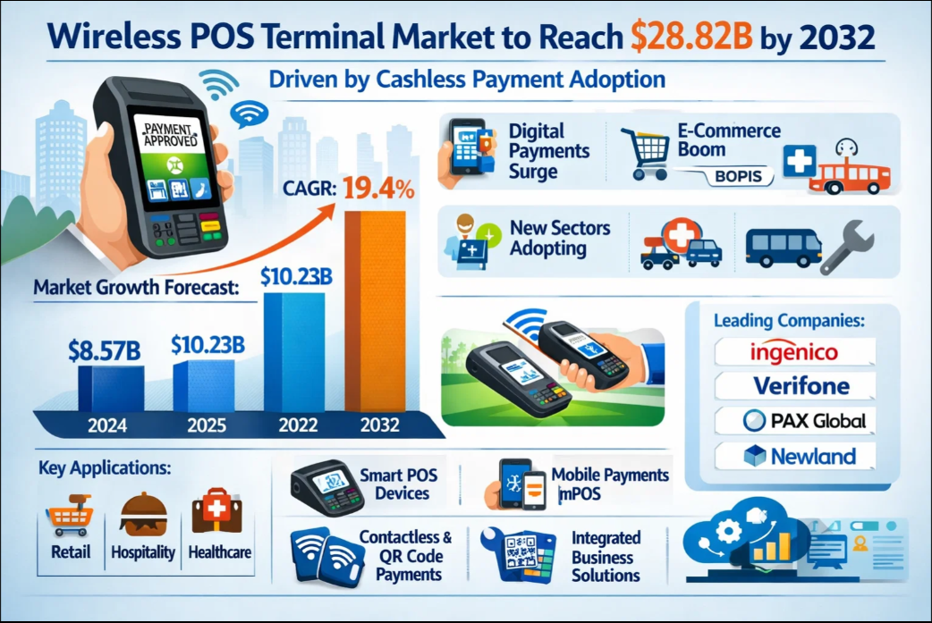 • Wireless POS Terminal Market Set to Hit $28.82B by 2032 Driven by Cashless Payment Adoption