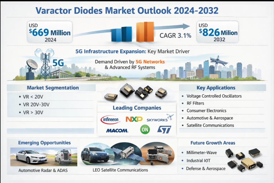 #VaractorDiodes #SemiconductorMarket #5GTechnology #RFComponents #ElectronicsIndustry #MarketGrowth #Telecommunications #AutomotiveRadar #ADAS #SatelliteCommunication #VCO #RFFilters #TechTrends #MarketResearch #SemiconductorInsight