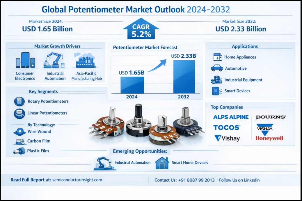 #PotentiometerMarket #ElectronicsIndustry #MarketGrowth #Automation #SmartDevices #IndustrialAutomation #ConsumerElectronics #MarketResearch #Semiconductor #TechTrends #GlobalMarket #ElectronicsManufacturing #Innovation #BusinessGrowth #IndustryAnalysis